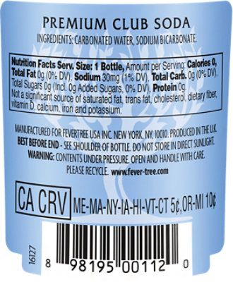 To make their club soda Fever-Tree. Our 200ml bottle is the. 0 Saturated Fat 0g Trans Fat 0g.