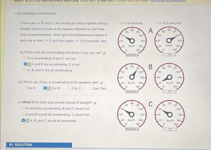 Solved 1 Recognizing Acceeeration Three Cars A B And C Chegg Com